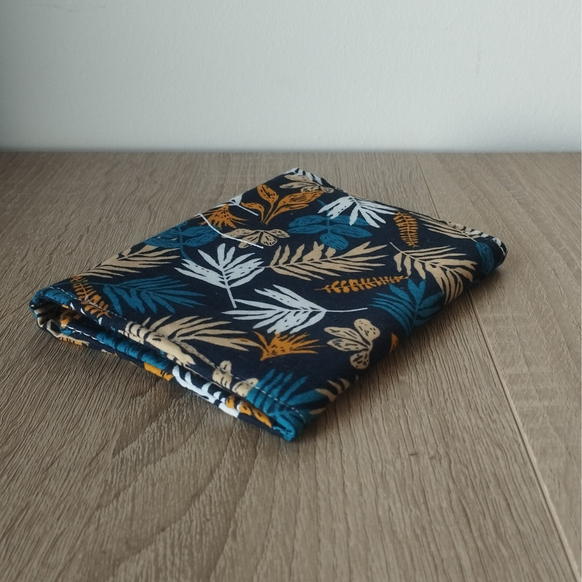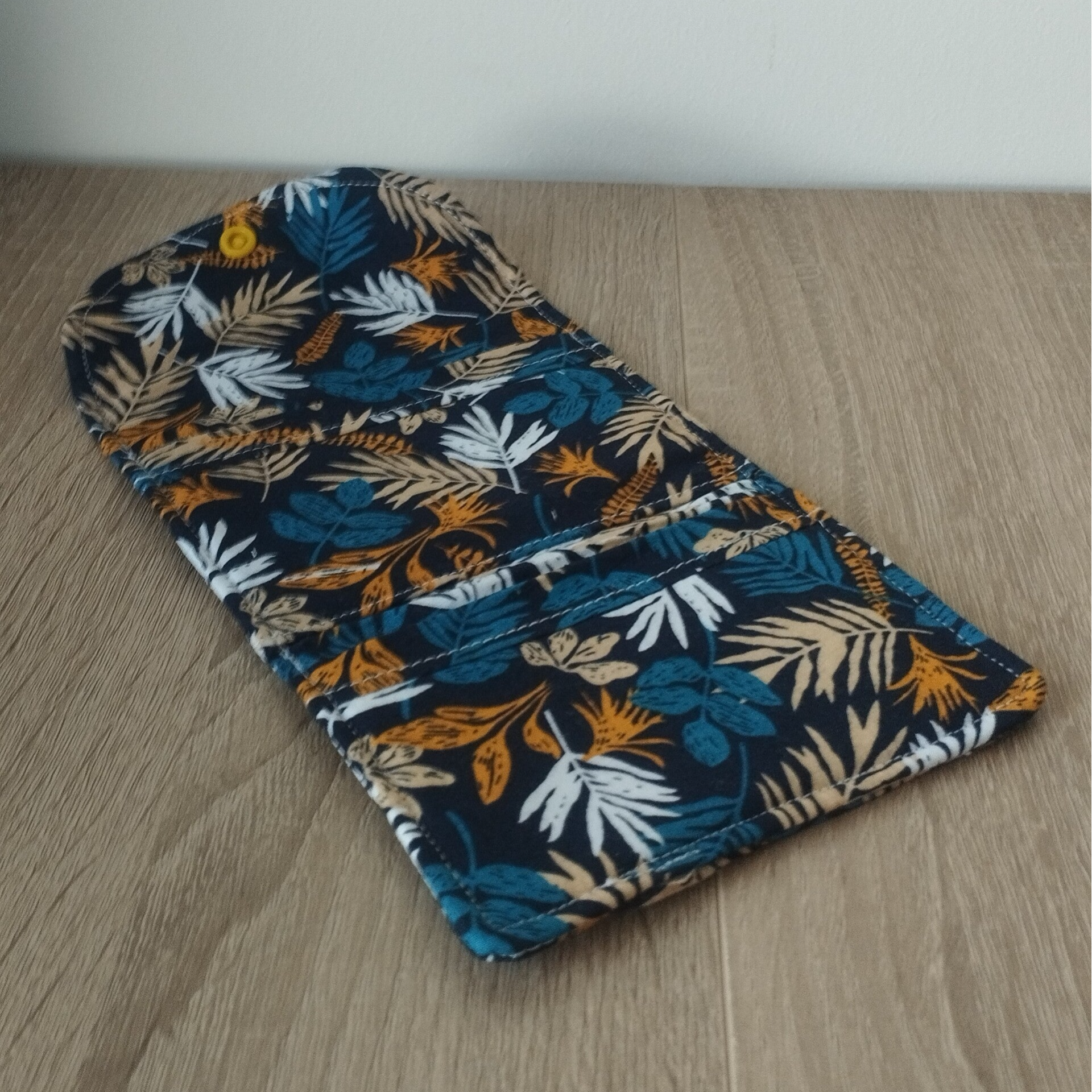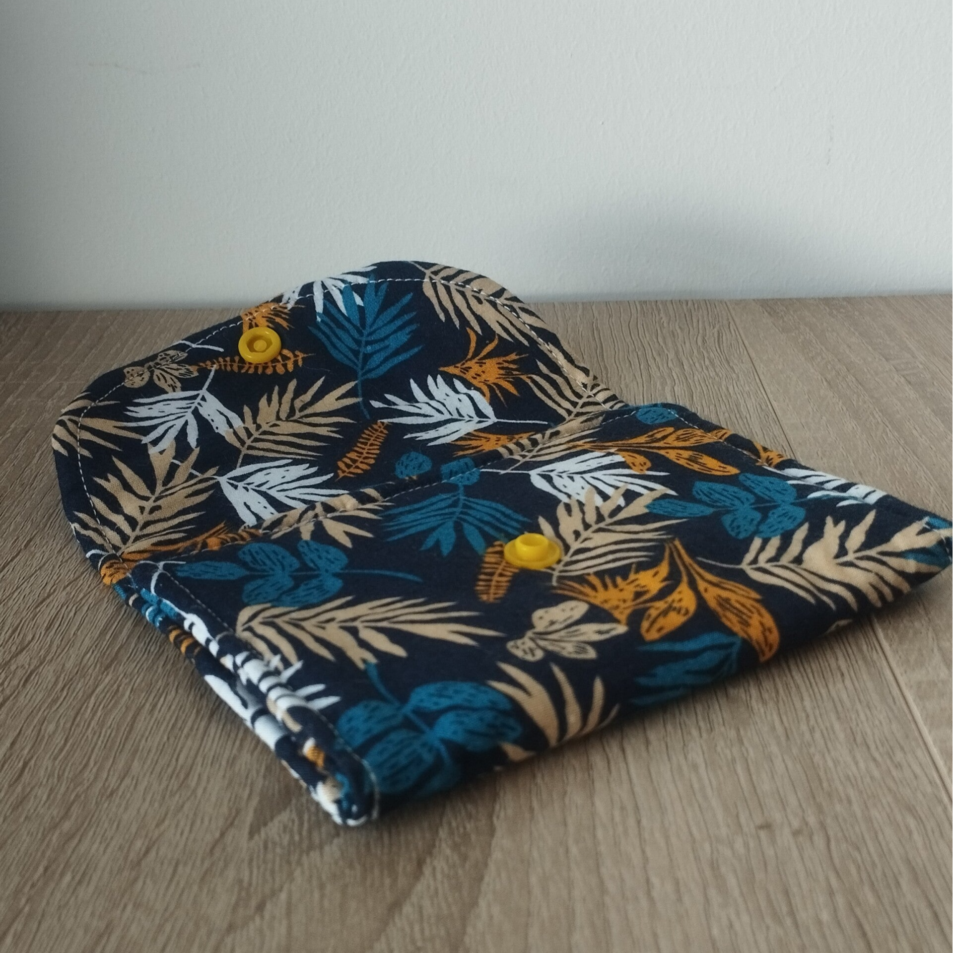 Pochette à serviettes hygiéniques feuilles marine et jaune